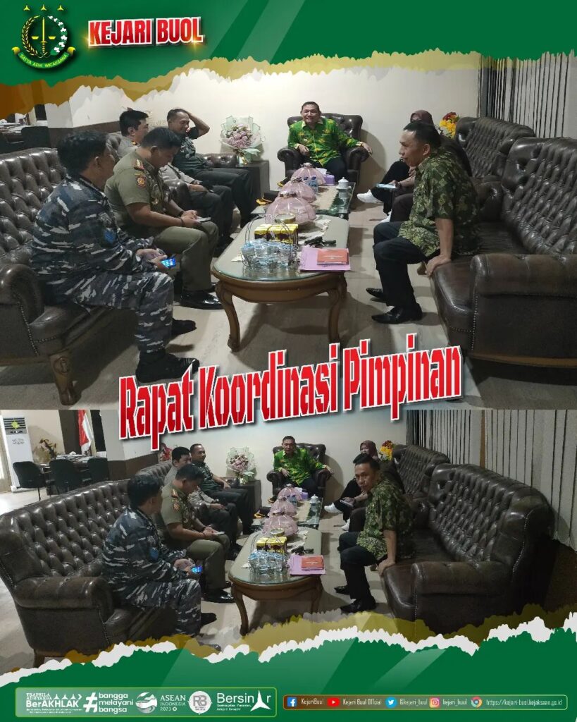 Kepala Kejaksaan Negeri Buol Bapak Adhitya Trisanto S.H.,M.H mengikuti rapat Koordinasi Pimpinan bersama Pj. Bupati Buol dan FORKOPIMDA Kabupaten Buol dalam rangka persiapan dan antisipasi menjelang masa kampanye Pemilu 2024 guna menjaga stabilitas keamanan dan ketertiban masyarakat di Kabupaten Buol serta membahas isu-isu konflik yang terjadi di Sulawesi Utara.