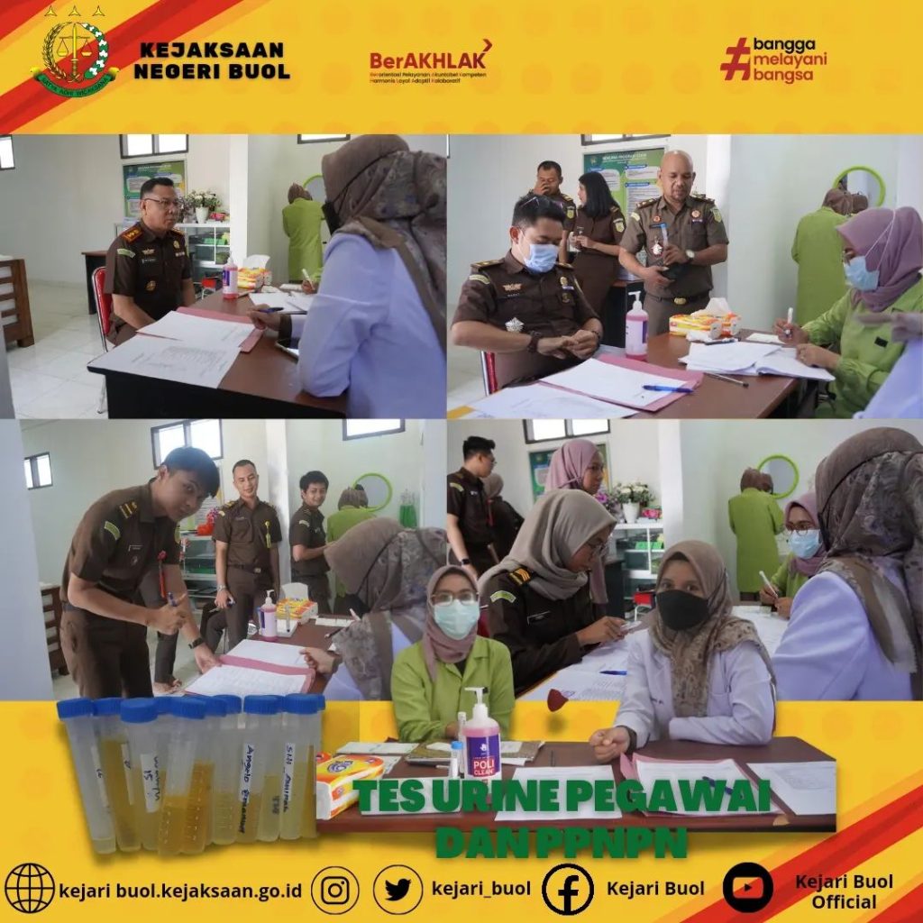 Pegawai Kejaksaan Negeri Buol, Cabjari Buol di Lokodidi, dan Cabjari Buol di Paleleh serta Pegawai Pemerintah Non Pegawai Negeri (PPNPN) melakukan Tes Urine di Poliklinik Kejaksaan Negeri Buol.