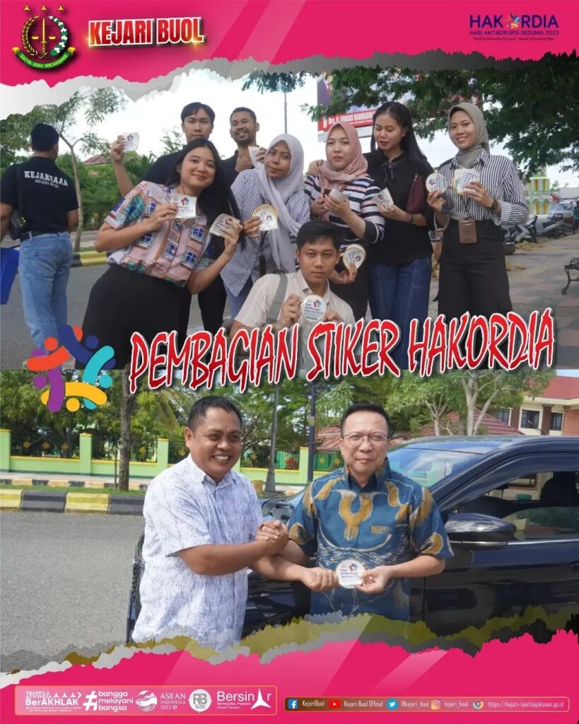 Kepala Kejaksaan Negeri Buol Bapak Adhitya Trisanto, S.H.,M.H bersama para Kepala Seksi dan Pegawai pada Kejaksaan Negeri Buol melaksanakan pembagian stiker peringatan HAKORDIA tahun 2023.