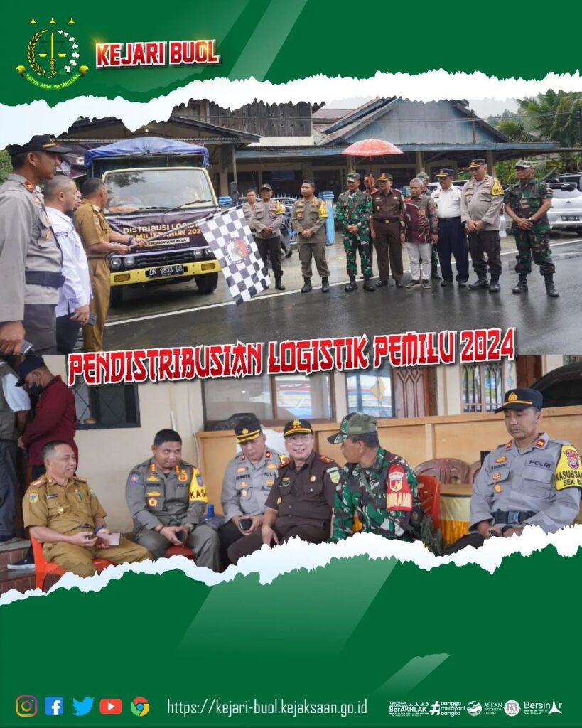 Senin 12 Februari 2024 Bertempat di Gudang Logistik KPU Kabupaten Buol, Kepala Kejaksaan Negeri Buol Bapak Adhitya Trisanto, S.H., M.H menghadiri pelepasan pendistribusian Logistik untuk Pemilihan Umum tahun 2024 di Kabupaten Buol.
