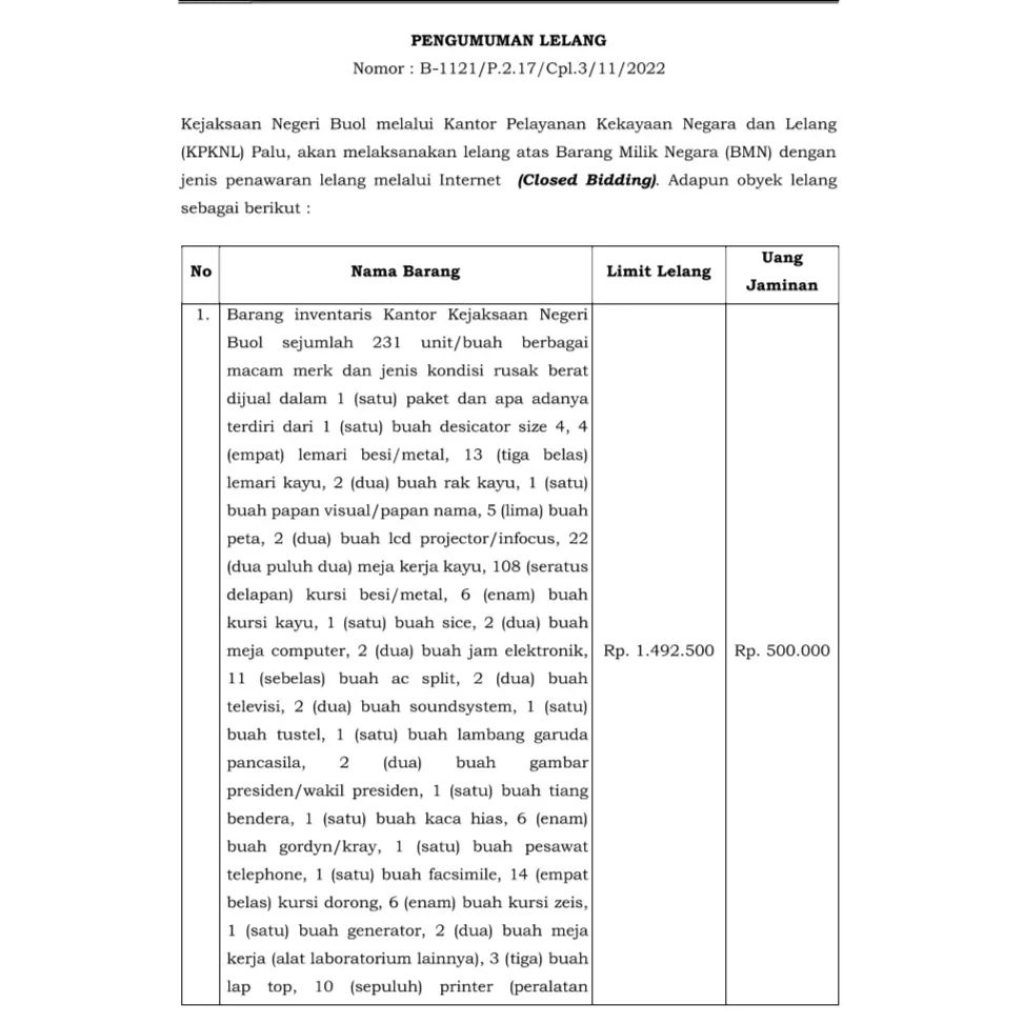 Lelang Kejaksaan Negeri Buol