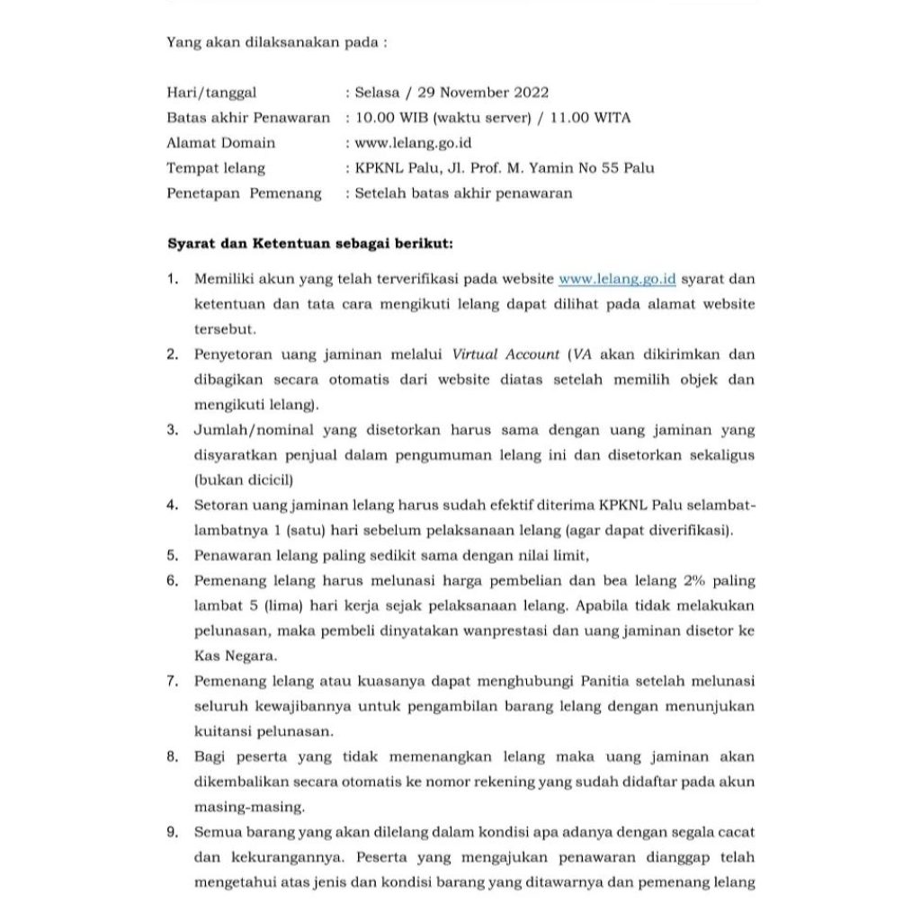 Mari ikuti Lelang yang akan diadakan oleh Kejaksaan Negeri Buol, untuk info lebih lanjut silahkan ikuti petunjuk dan bisa menghubungi kontak yang tertera pada pengumuman diatas.
