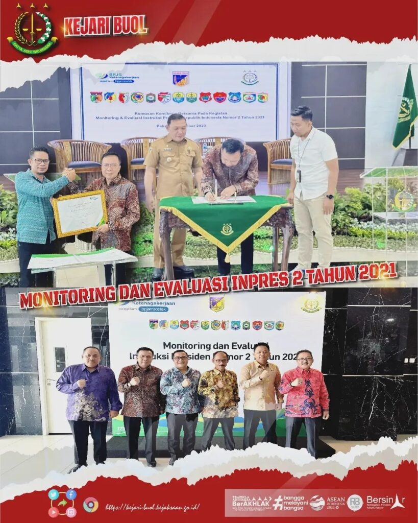 Kepala Kejaksaan Negeri Buol Bapak Adhitya Trisanto, S.H.,M.H, bersama Jaksa Pengacara Negara (JPN) pada Kejaksaan Negeri Buol mengikuti kegiatan Monitoring dan Evaluasi INPRES 2 Tahun 2021 sekaligus Perpanjangan MoU antara BPJS ketenagakerjaaan dan Kejaksaan Negeri se-Jajaran Wilayah Sulawesi Tengah yang dirangkaikan dengan penyerahan penghargaan kepada Kejaksaan Negeri se- Jajaran Wilayah Sulawesi Tengah.