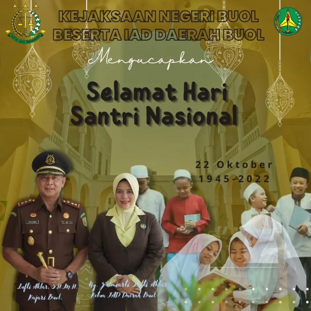 Segenap Keluarga Besar Kejaksaan Negeri Buol Beserta IAD Daerah Buol mengucapkan selamat hari Santri Nasional 22 Oktober 2022