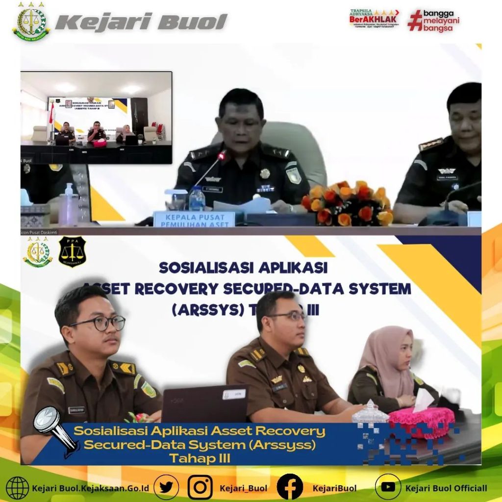 Kasi PB3R Bapak Dimas Putra Pradhyaksa, S. H.,M.H., bersama Staff pada seksi PB3R Kejaksaan Negeri Buol mengikuti Vicon “Sosialisasi Aplikasi Asset Recovery Secured Data System (Arssys) Tahap III”, yang dimulai dari tanggal 11 s/d 12 Januari 2022.